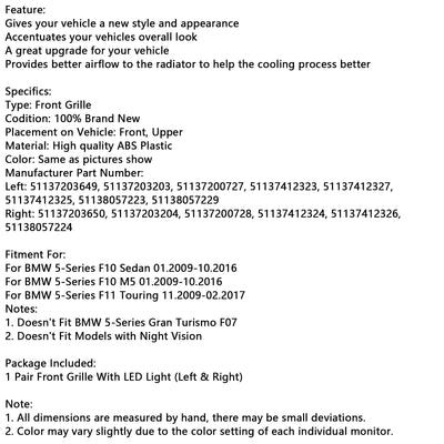 01.2009-10.2016 BMW 5-Series F10 M5 Kidney Bumper Grill Grille Gloss Black 51137203649 51137203203