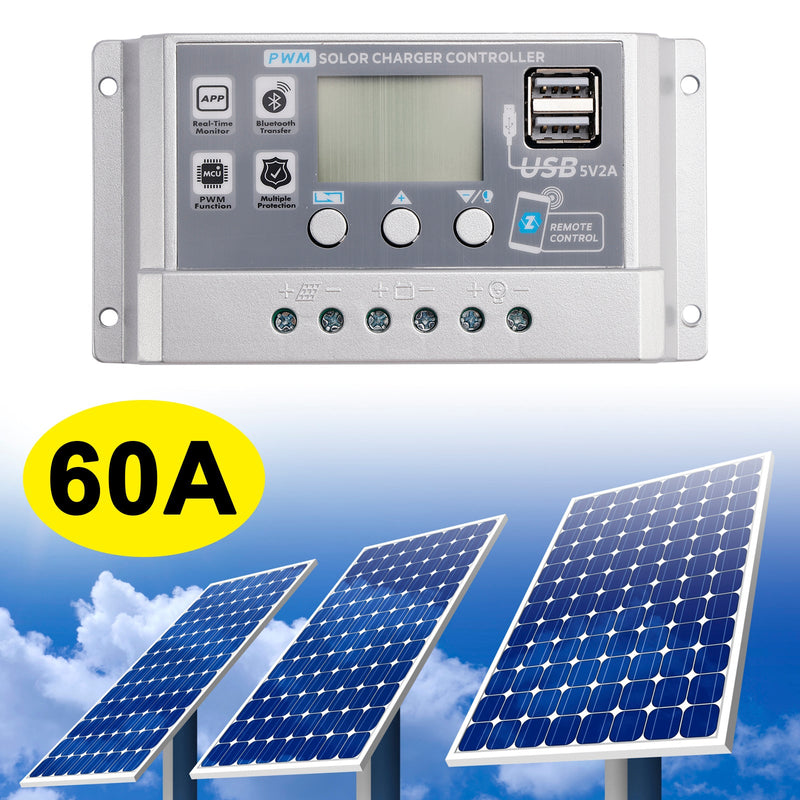 10A/20A/30A/40A/50A/60A PWM Solar Controller Mobile APP Intelligent Control 12V24V Solar Controller Display Current Solar Street Light Controller 0V Start