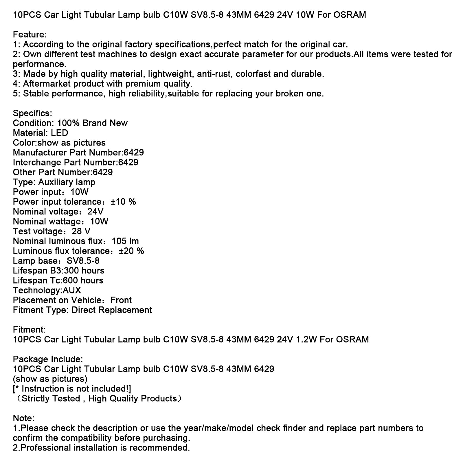 10PCS Car Light Tubular Lamp bulb C10W SV8.5-8 43MM 6429 24V 1.2W For OSRAM