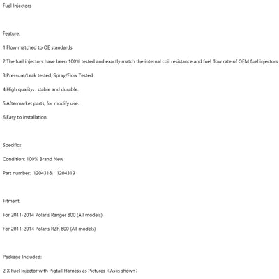 Fuel Injectors Harness (PAIR) Fit for Polaris RZR Ranger 800 11-14 1204318 1204319