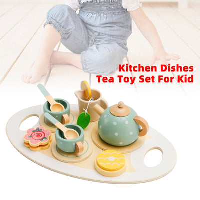 15Pcs Western Kitchen Wooden Tea Sets Play Kitchen Dishes Set