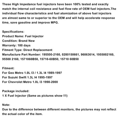 1PCS Fuel Injector 0280150661 Fit Geo Metro Fit Suzuki Swift 1.0L 195500-2160