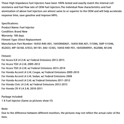 1PCS Fuel Injector 16450-R40-A01 Fit Honda Accord Civic CRV 2.4L 2008-2015