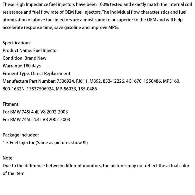1PCS Fuel Injector 7506924 Fit BMW 745i 745Li 4.4L V8 2002-2003 155-0486