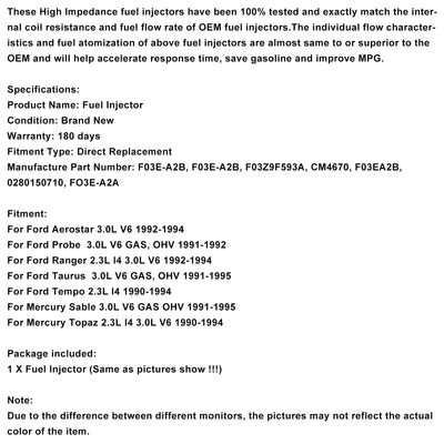 1PCS Fuel Injector CM4670 Fit Ford Ranger 2.9L 3.0L 3.8L V6 1985-1997 F03E-A2B