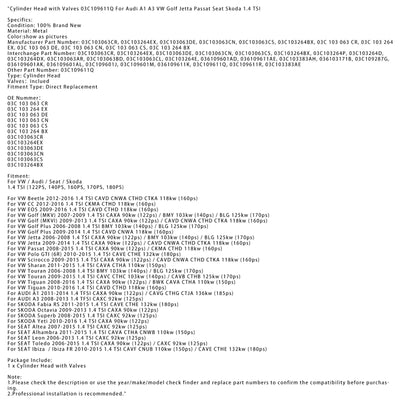 Cylinder Head with Valves 03C109611Q For Audi A1 A3 VW ForGolf Jetta Passat?Seat Skoda 1.4 TSI