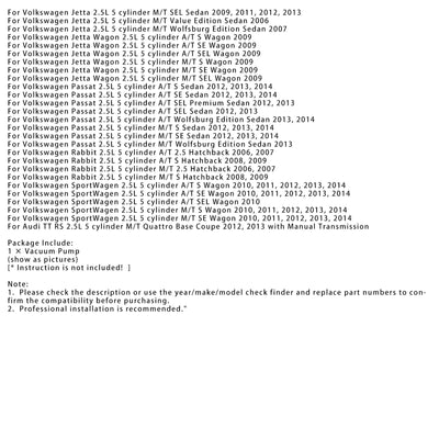 For Volkswagen Jetta 2.5L 5 cylinder A/T SEL Sedan 2008, 2009, 2010, 2011, 2012, 2013