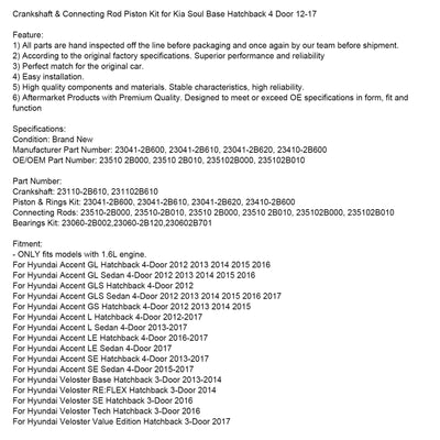 Crankshaft & Connecting Rod Piston Kit Fit for Kia Soul Base Hatchback 4 Door 12-17