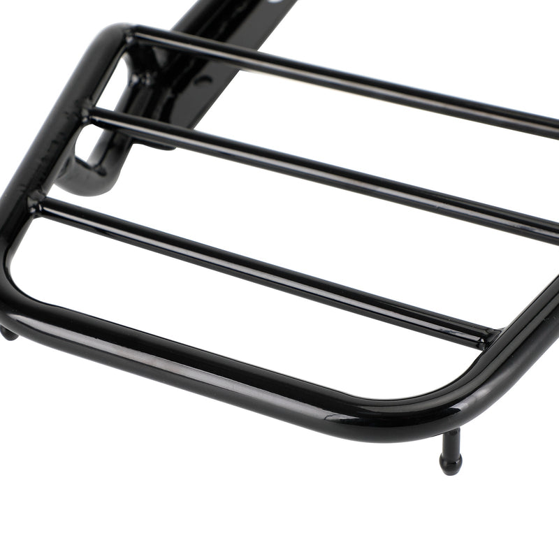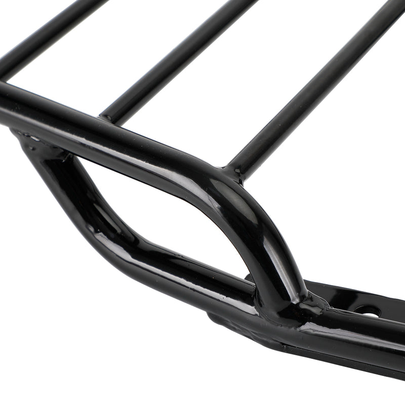 This heavy-duty rack is made of 16mm steel pipe and is designed to mount any pannier with mounting kits installed.