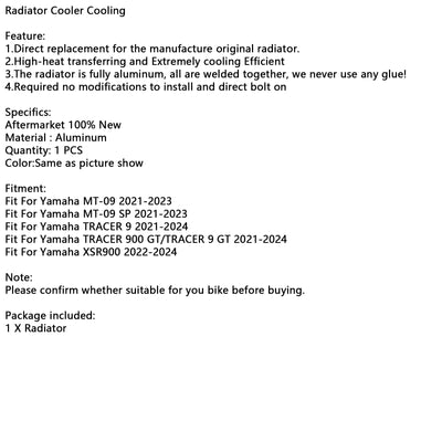 Radiator Cooling Engine Cooler For Yamaha MT-09/SP TRACER 9 XSR900 21-24