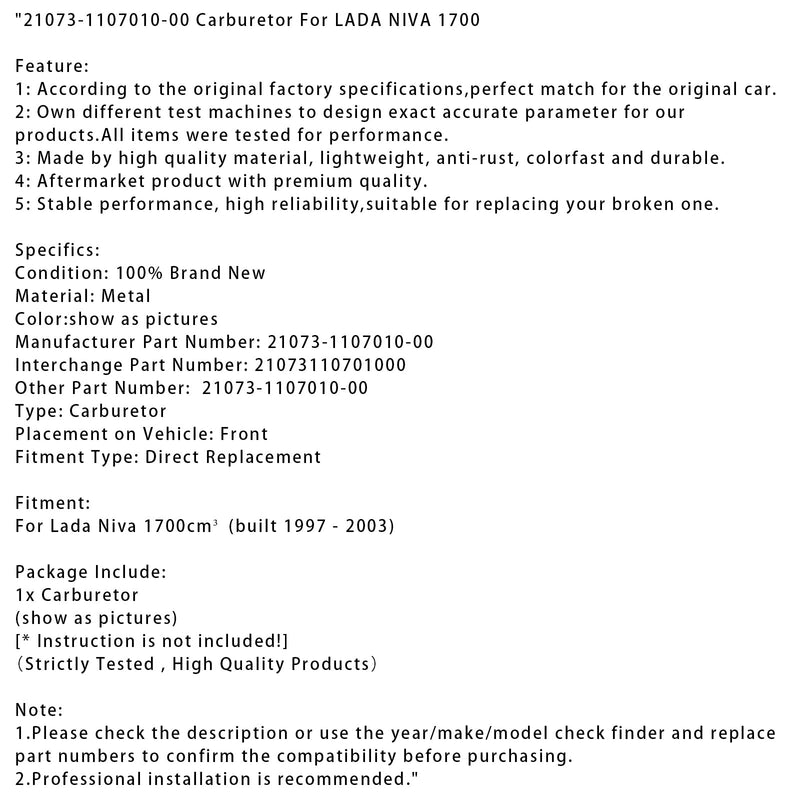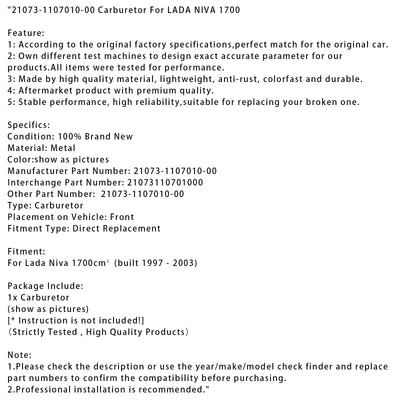 1997-2003 Lada Niva 1700cm³ Carburetor 21073-1107010-00