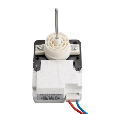 The Refrigerator Condenser Fan Motor has electrical specifications of 115V 2.6W and has a 2- pin connector, Shaft Length: 5.5cm, Shaft diameter: 3mm Line length:28cm