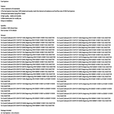 For Suzuki Outboard 2015 20HP DF 20AS Beginning VIN 02002F-510001 to 02002F-51XXXX FUEL INJECTOR