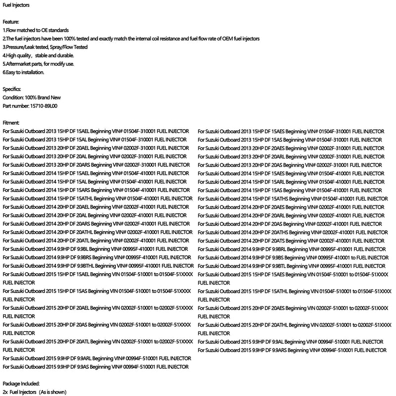2PCS Fuel Injector Fit For Suzuki Outboard DF 15HP 9.9HP 20HP 15710-89L00