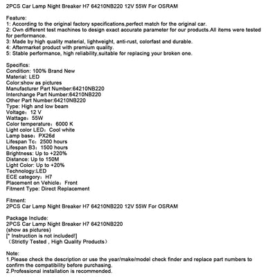 2PCS Car Lamp Night Breaker H7 64210NB220