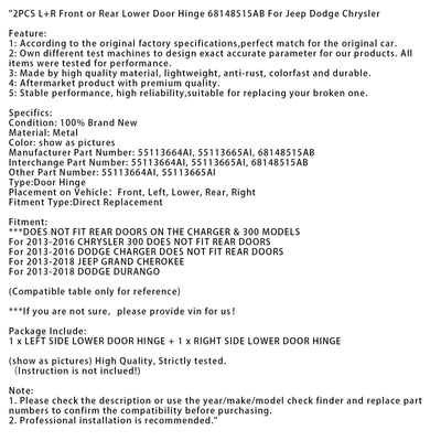 2013-2016 CHRYSLER 300 DOES NOT FIT REAR DOORS 2PCS L+R Front or Rear Lower Door Hinge 68148515AB