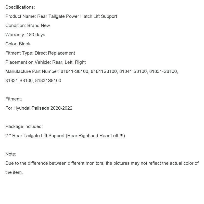 2PCS Power Liftgates Lift Support 81831-S8100 Fit For Hyundai Palisade 2020-2022