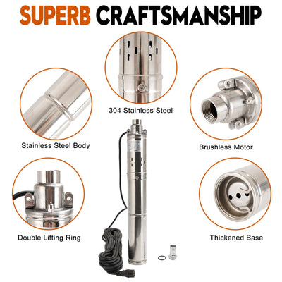 3" 24V 350W MPPT Screw Solar Bore Pump Submersible Deep Well Hole Steel