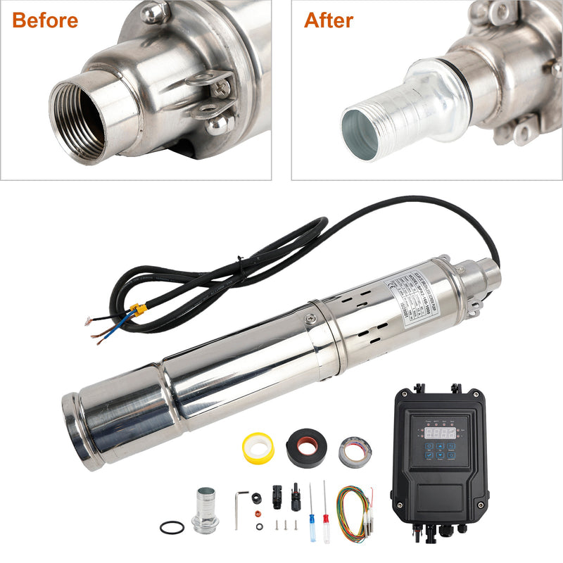3" 60V 1KW MPPT Screw Solar Bore Pump Submersible Deep Well Hole Steel Head 160M