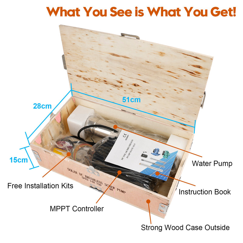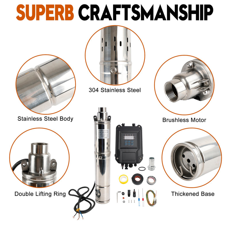 1x 3" DC stainless steel solar Pump with 2m cable.