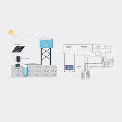 * MPPT Charge Controller - The controller protects the pump from frequent start up in low light conditions, overheating & running dry.