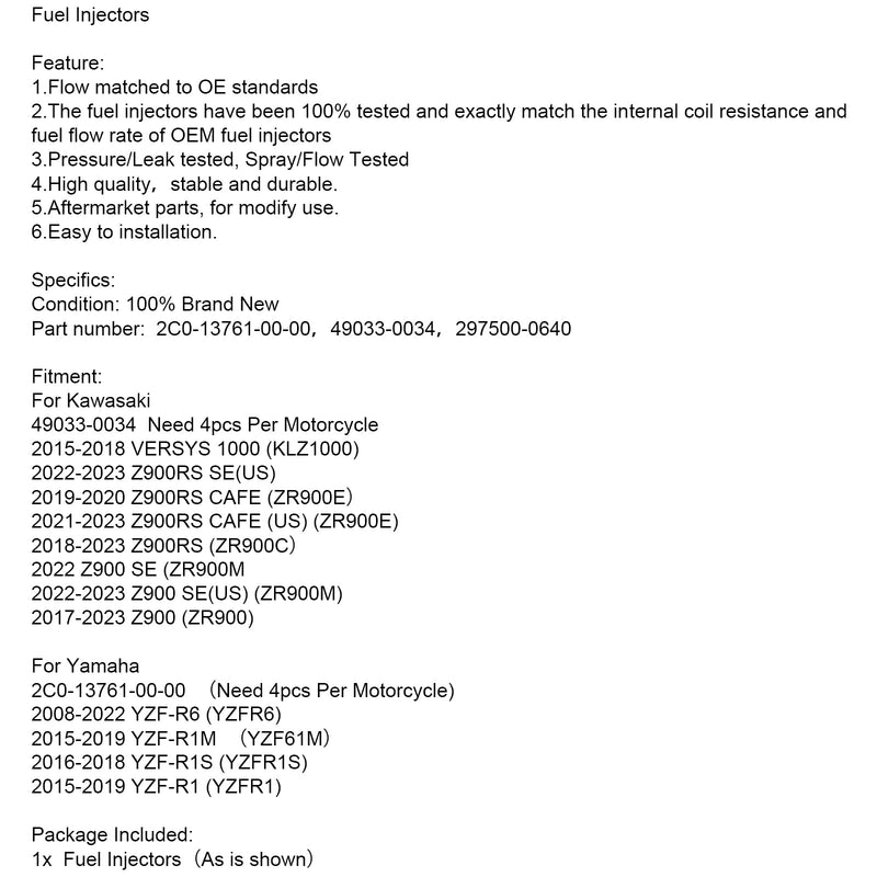 Fuel Injectors Fit for Yamaha YZF R1 R6 49033-0034 297500-0640 2C0-13761-00-00
