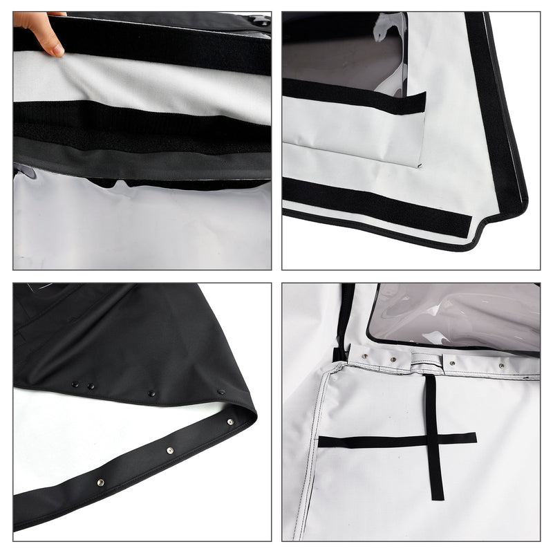 When not in use, the top is stored in the convenient built-in storage system along with the side panels.