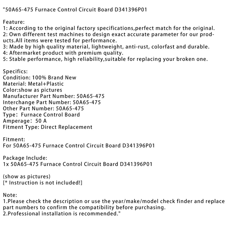 For 50A65-475 Furnace Control Circuit Board D341396P01