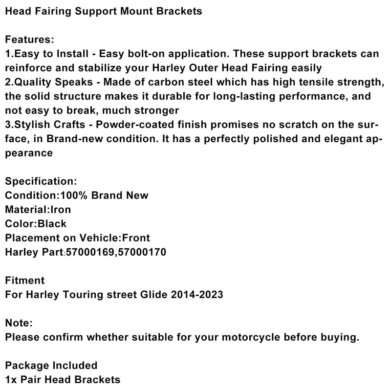 Head Fairing Support Mount Brackets Fit For Touring street Glide 2014-2023 57000169 57000170