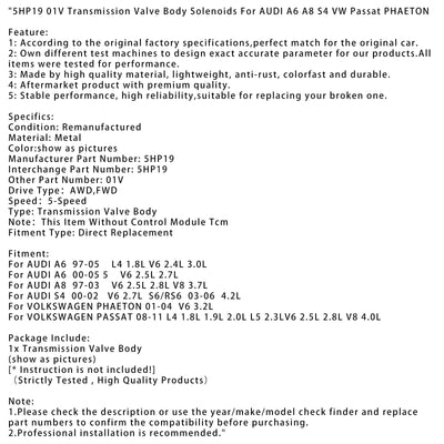 5HP19 01V Transmission Valve Body Solenoids For AUDI A6 A8 S4 VW Passat PHAETON