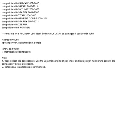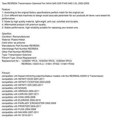 7pcs RE5R05A Transmission Solenoid Fit For Infiniti Q45 G35 FX45 M45 3.5L 2003-2009