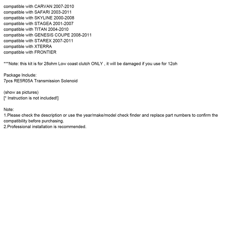 compatible with Nissan/Infiniti/Hyundai/Kia/Datsun models with the RE5R05A A5SR1/2 Transmission