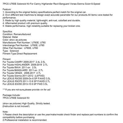 7PCS U760E Solenoid Kit For Camry Highlander Rav4 Banguard Venza Sienna Scion 6-Speed
