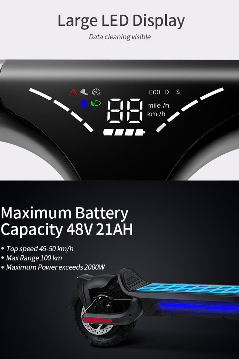 800W ELECTRIC SCOOTER FOLDING E-SCOOTER 50KM RANGE 10" OFF ROAD 15AH 45KM/H