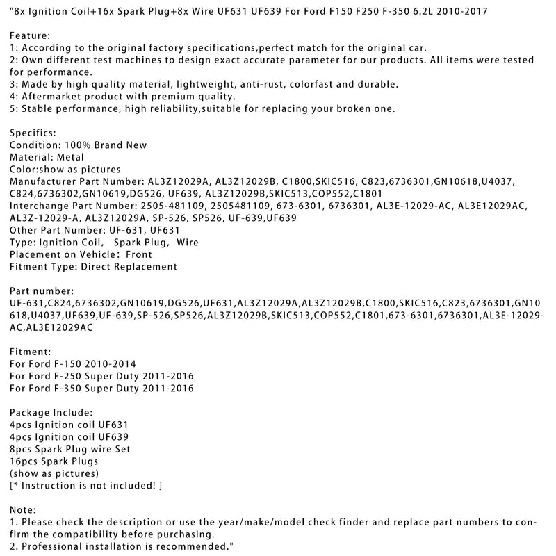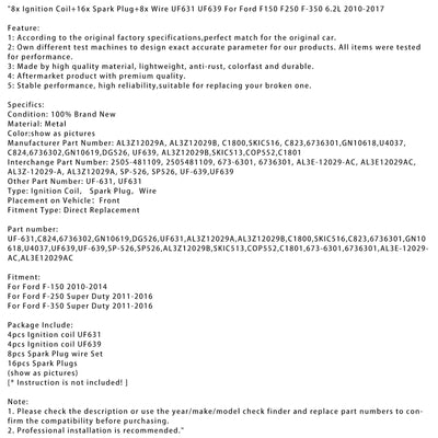 8x Ignition Coil+16x Spark Plug+8x Wire UF631 UF639 For Ford F150 F250 F-350 6.2L 2010-2017