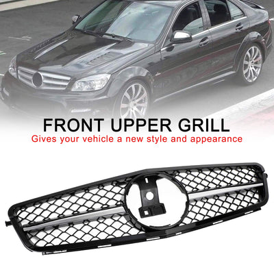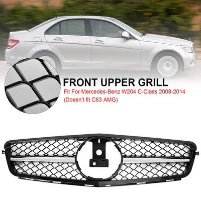 W204 C-Class 2008-2014 BENZ C250 C300 C350 ABS Gloss Black Chrome Front Bumper Car Grille
