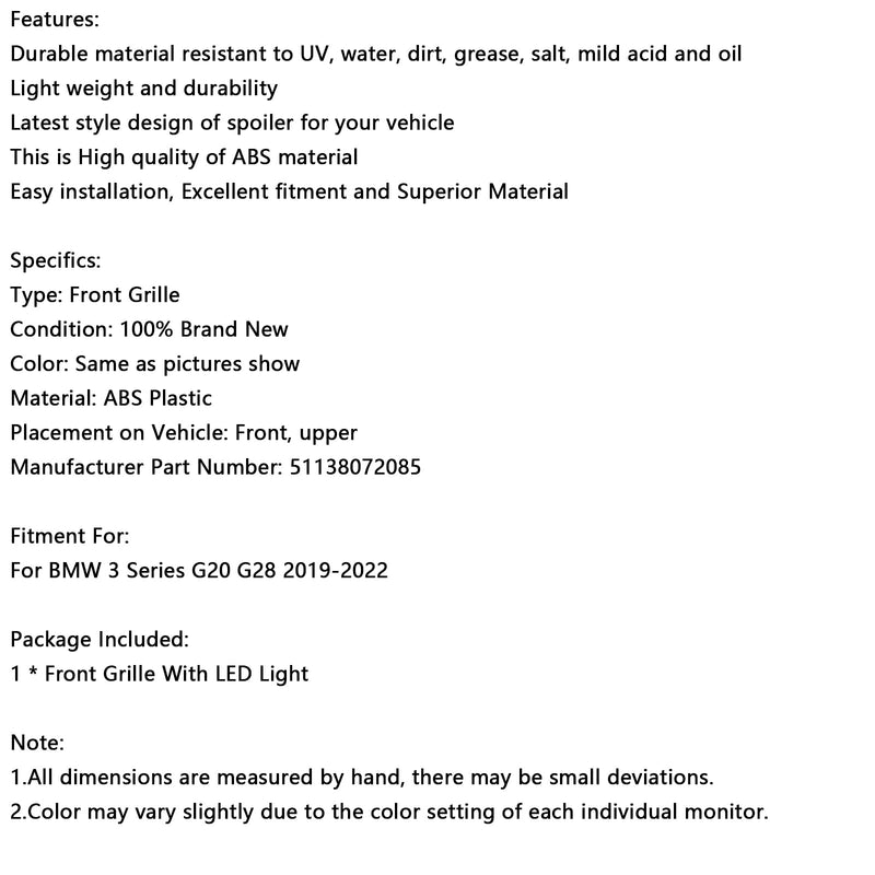 Black Diamond Kidney Grille Grill 51138072085 Fit BMW 3 Series G20 2019-2022