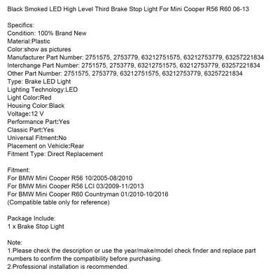 Black Smoked LED High Level Third Brake Stop Light For Mini Cooper R56 R60 06-13