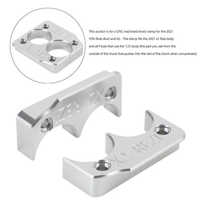 This auction is for a CNC machined shock clamp for the 2021 FOX float dhx2 and X2. . The clamp fits the 2021 x2 Rezi body and all Foxes that use the 1.25 body (the part you see from the outside of the shock that pushes into the rest of the shock when compressed).