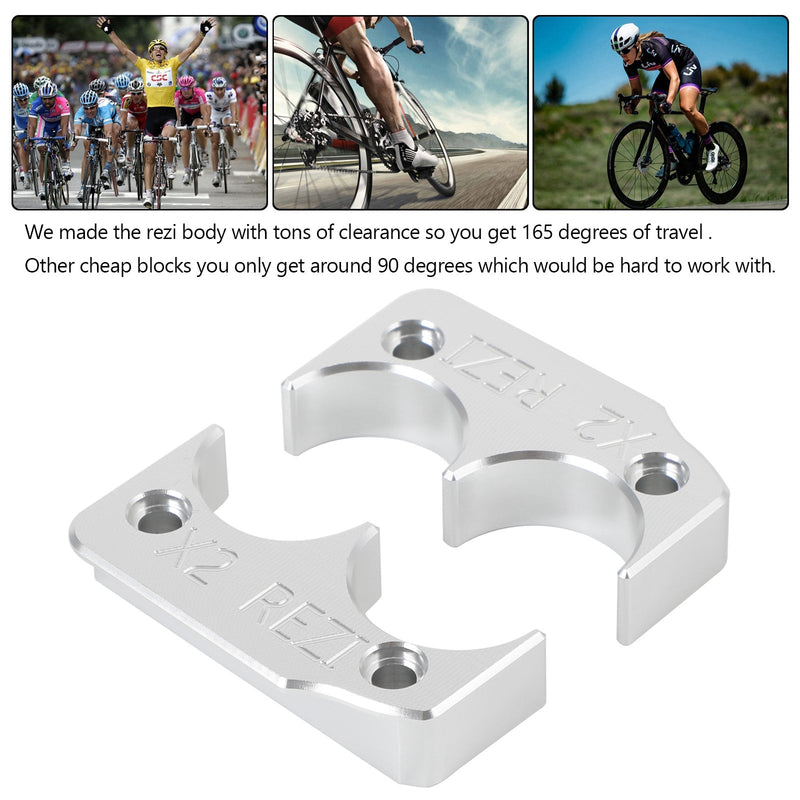 We made the rezi body with tons of clearance so you get 165 degrees of travel . Other cheap blocks you only get around 90 degrees which would be hard to work with.