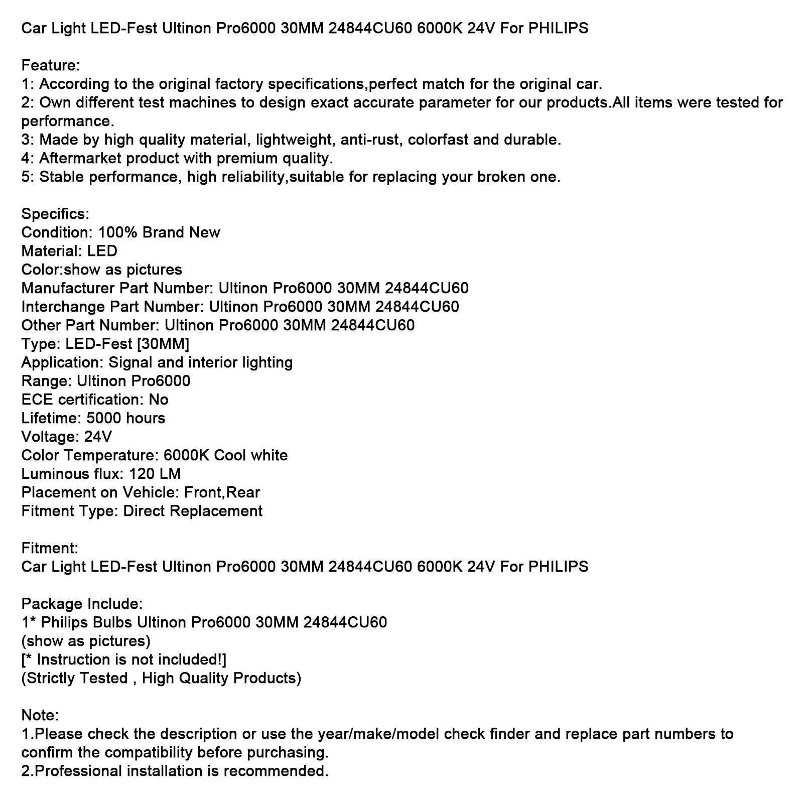 Manufacturer Part Number: Ultinon Pro6000 30MM 24844CU60