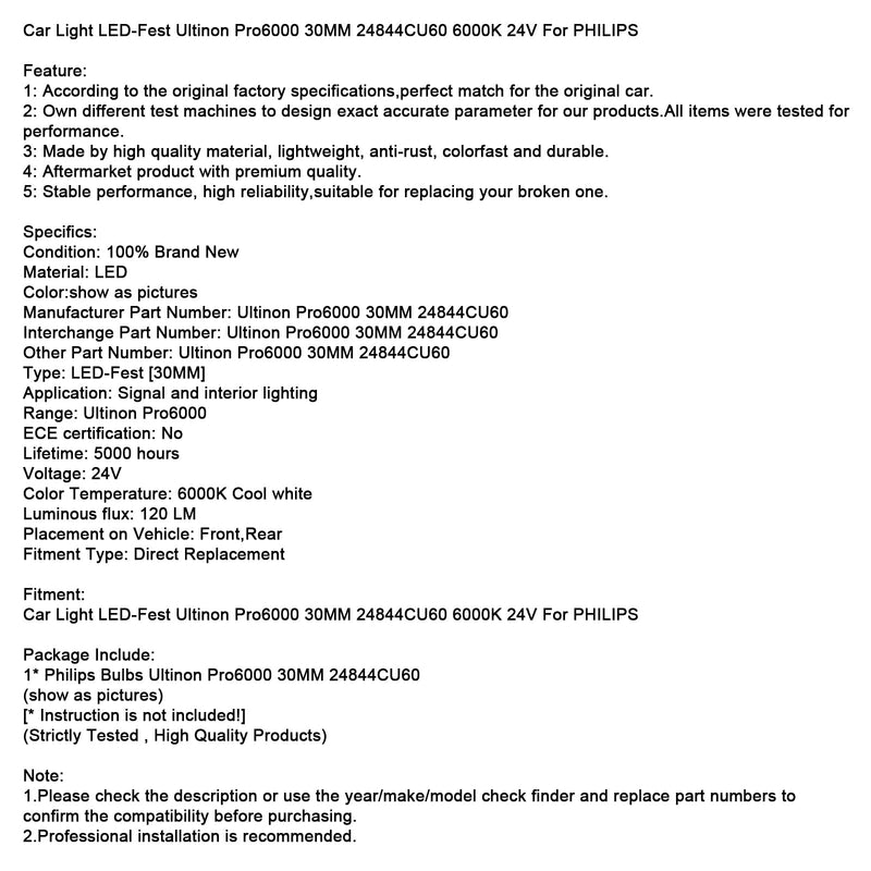 Car Light LED-Fest Ultinon Pro6000 30MM 24844CU60 6000K 24V For PHILIPS