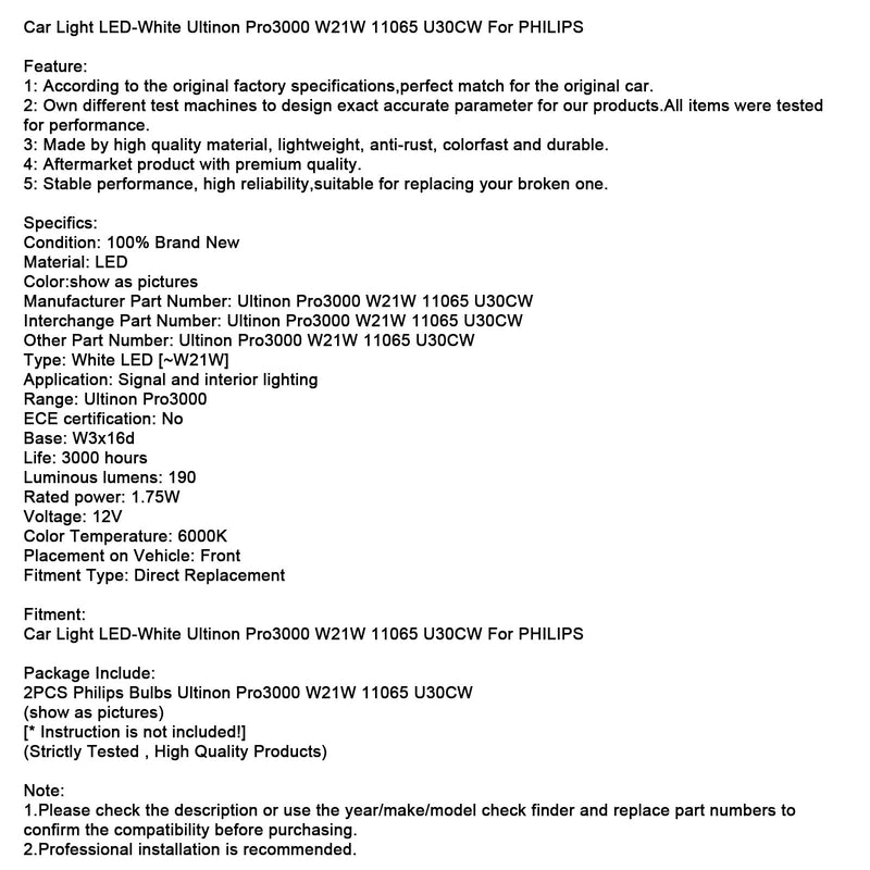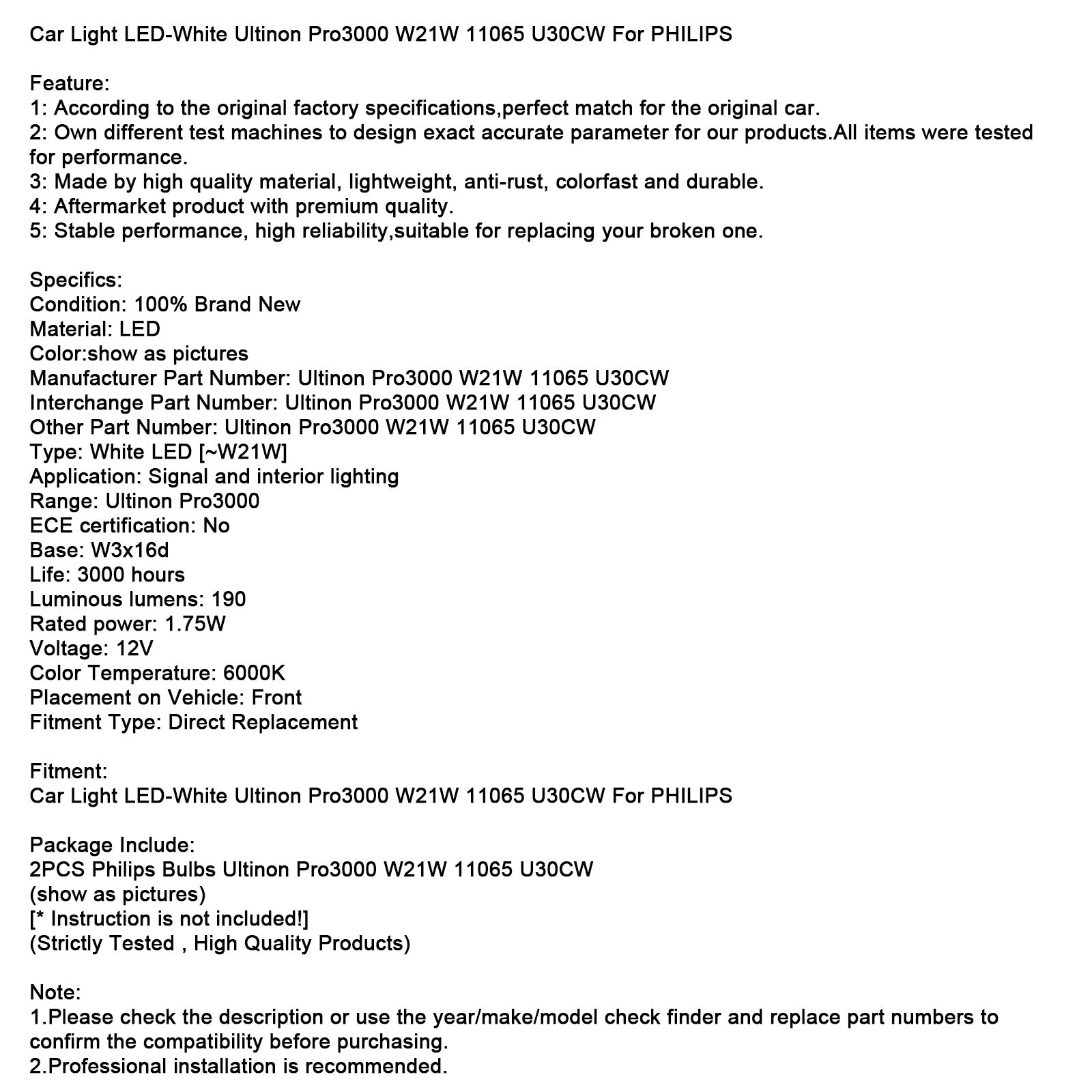 Car Light LED-White Ultinon Pro3000 W21W 11065 U30CW For PHILIPS