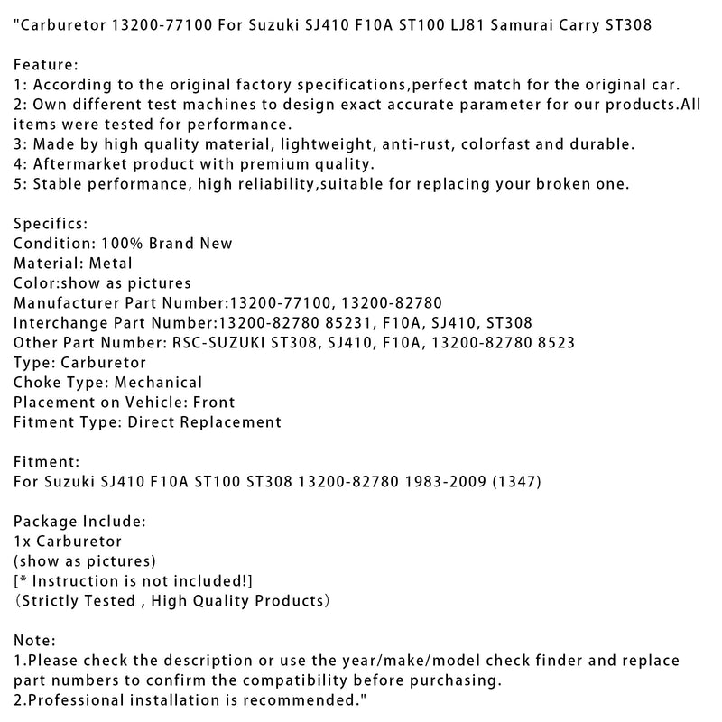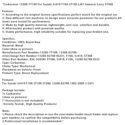 1983-2009 Suzuki SJ410 F10A Carburetor ST100 ST308 13200-82780 13200-77100 (1347)