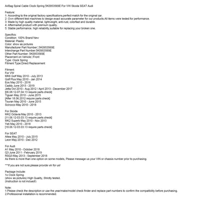 AirBag Spiral Cable Clock Spring 5K0953569E 5K0953569AH For VW Skoda SEAT Audi