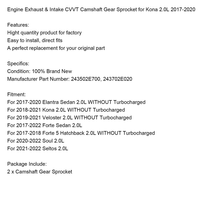 Engine Exhaust & Intake CVVT Camshaft Gear Sprocket for Kona 2.0L 2017-2020