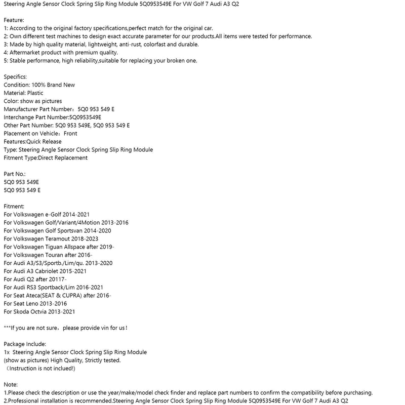 2.Professional installation is recommended.Steering Angle Sensor Clock Spring Slip Ring Module 5Q0953549E For VW Golf 7 Audi A3 Q2