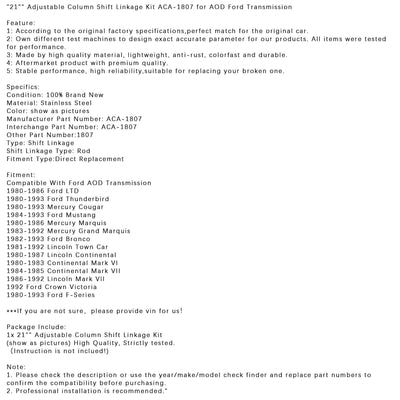 21" Adjustable Column Shift Linkage Kit ACA-1807 for AOD Ford Transmission