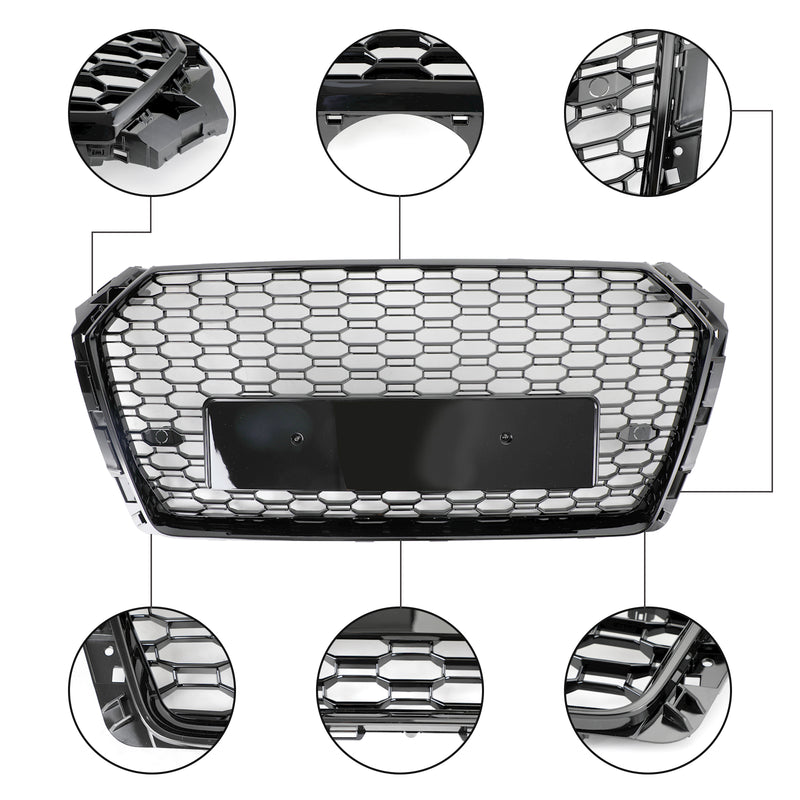 Audi A4 2017-2019 Honeycomb Mesh Hex Car Grille Grill RS4 Style Black