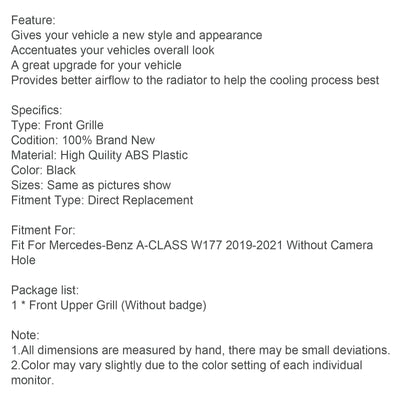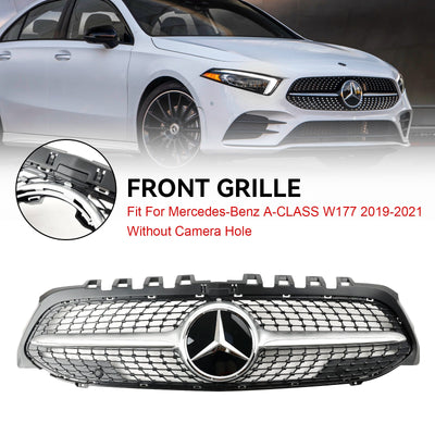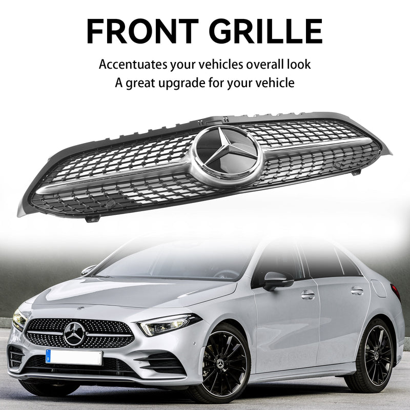 2019-2023 Benz A-Class W177 Diamond Front Bumper Grill Grille Black